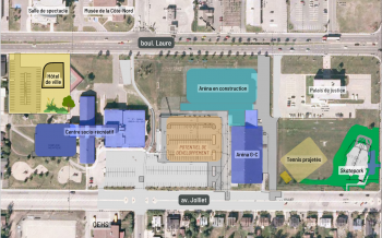 Le nouvel hôtel de ville aura pignon sur rue sur le boulevard Laure, en face de la salle de spectacle. Il sera construit derrière le complexe aquatique, à l'emplacement des actuels terrains de tennis. Il est prévu que ceux-ci soient reconstruits dans le même secteur, derrière l'aréna Guy-Carbonneau.