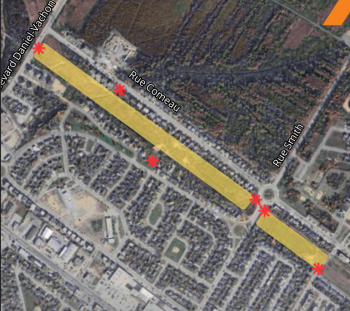 La Ville invite les usagers des rues Radisson, Smith, Bourgeois, Comeau et du boulevard Daniel-Vachon à faire preuve de vigilance lorsqu’ils circulent à proximité des différents accès utilisés par les camions de chantier.